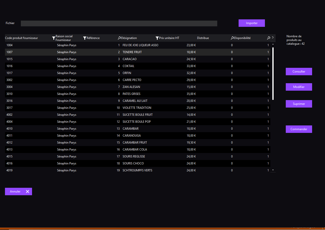 Cette application gère le catalogue des produits proposés en interne. Elle est directement connectée à l’application Intranet de commandes, permettant une synchronisation automatique et en temps réel. Toute modification du catalogue (ajout, suppression ou mise à jour d’articles) est instantanément reflétée dans l’interface de commande.